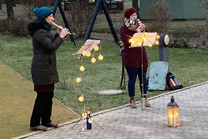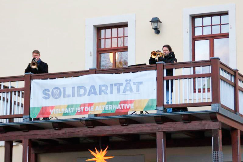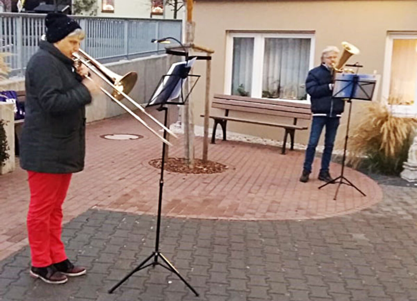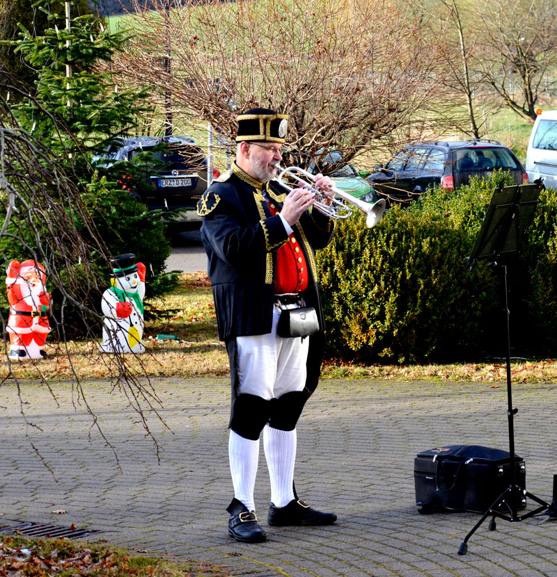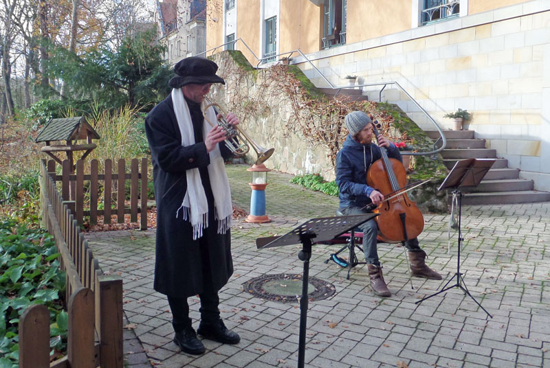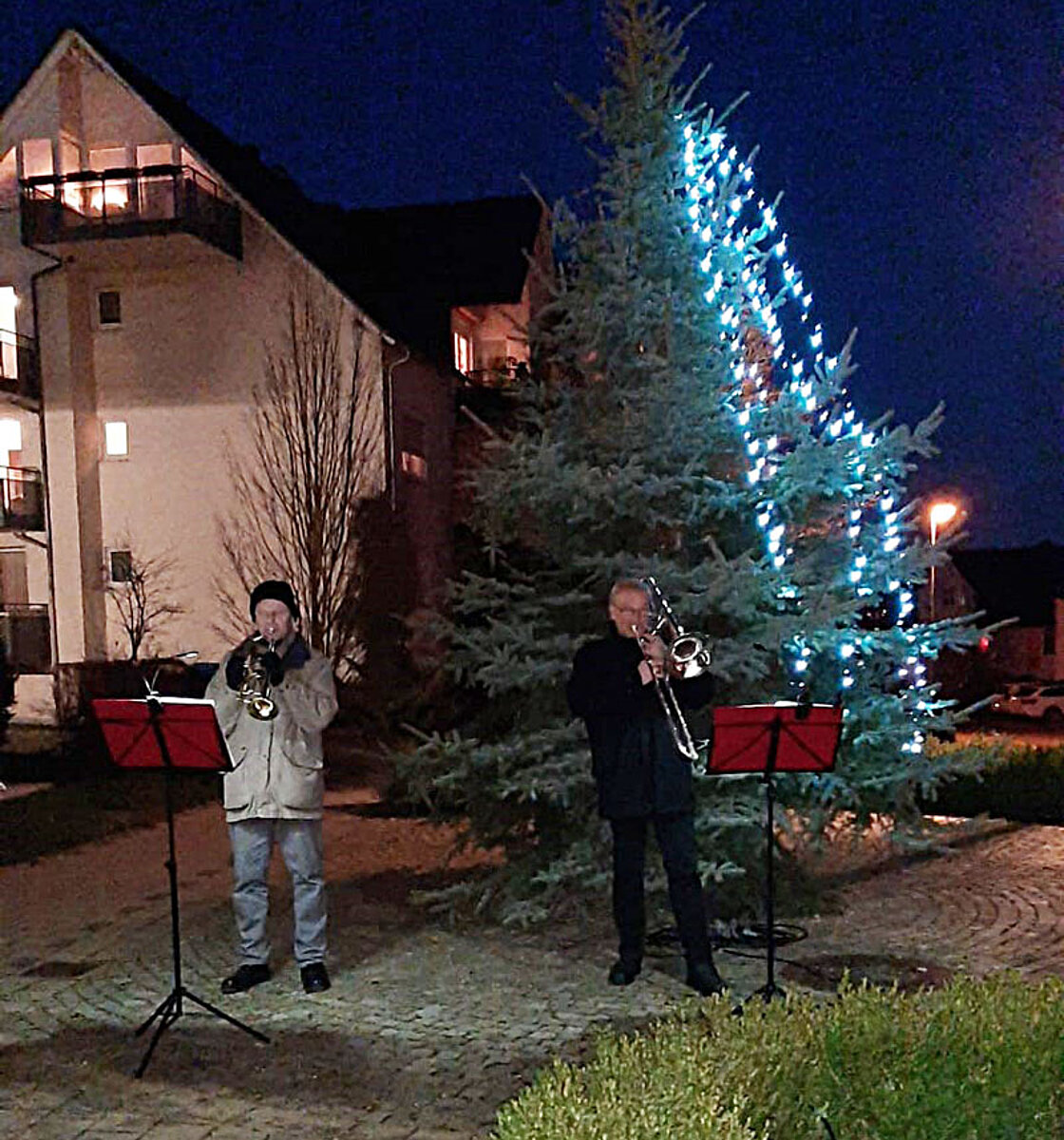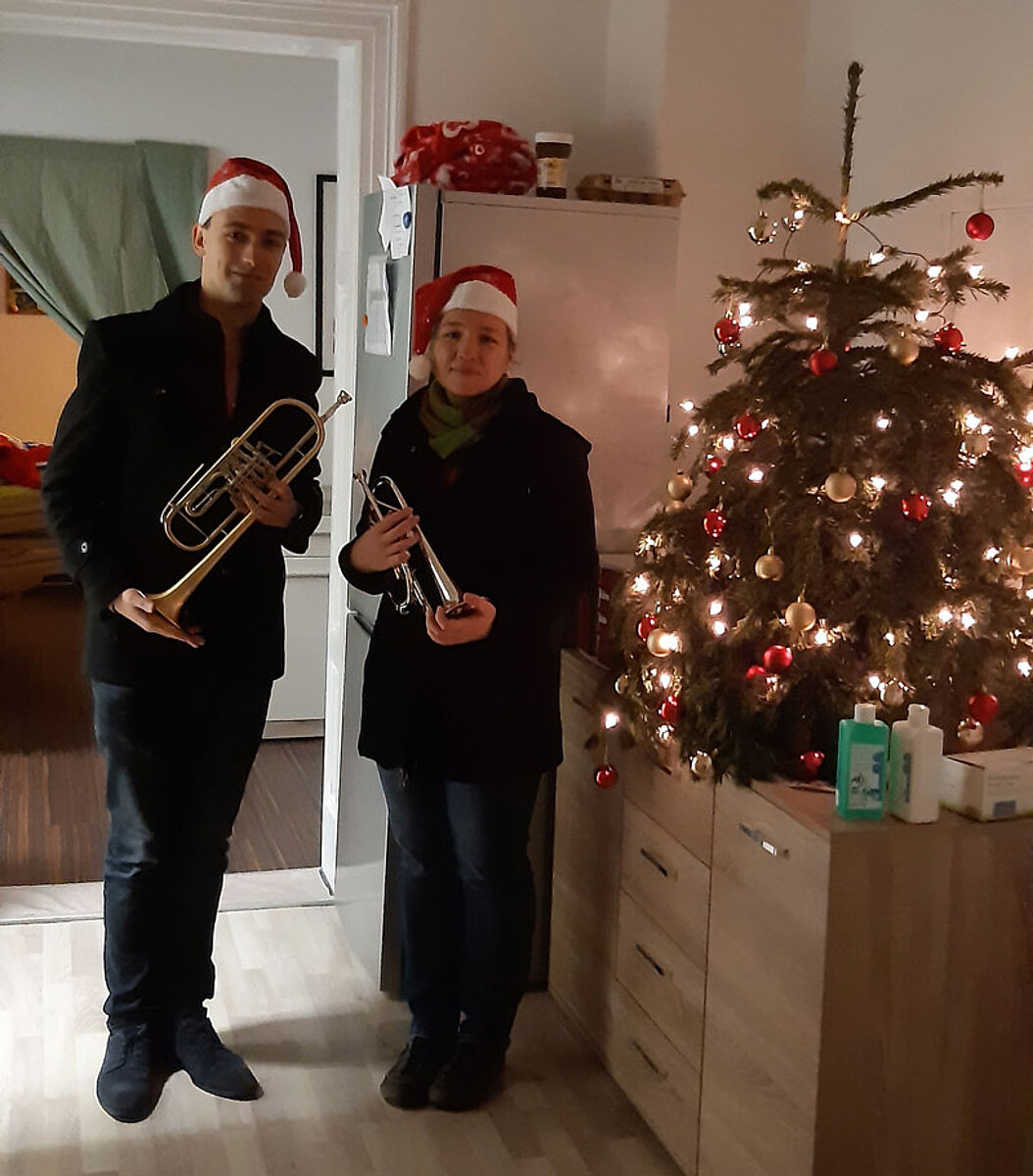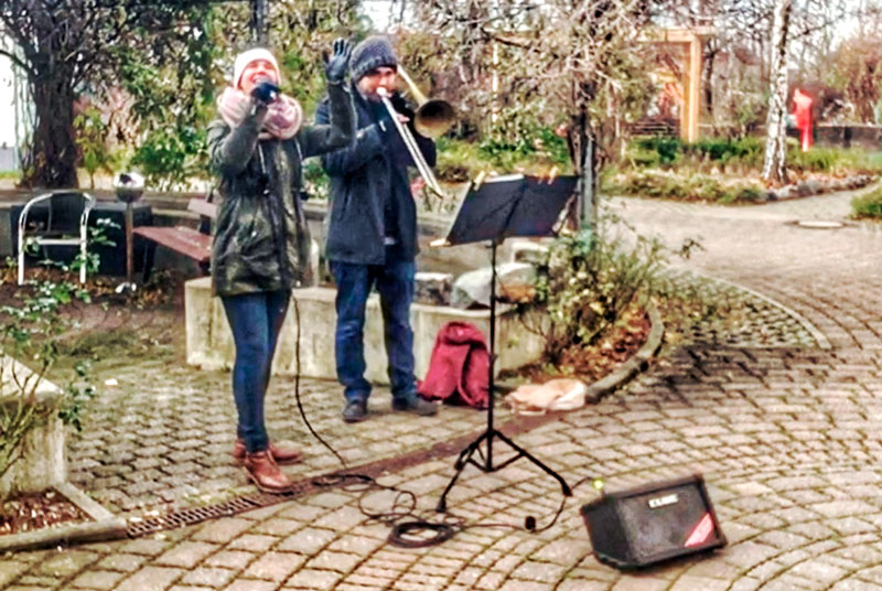 Montag, 21. Dezember: (II) Trompetenduo Burkhardt Fischer & Janice Stand an der Wohngemeinschaft Turmvilla und an Wohngemeinschaft an der Autobahnauffahrt in Frankenberg