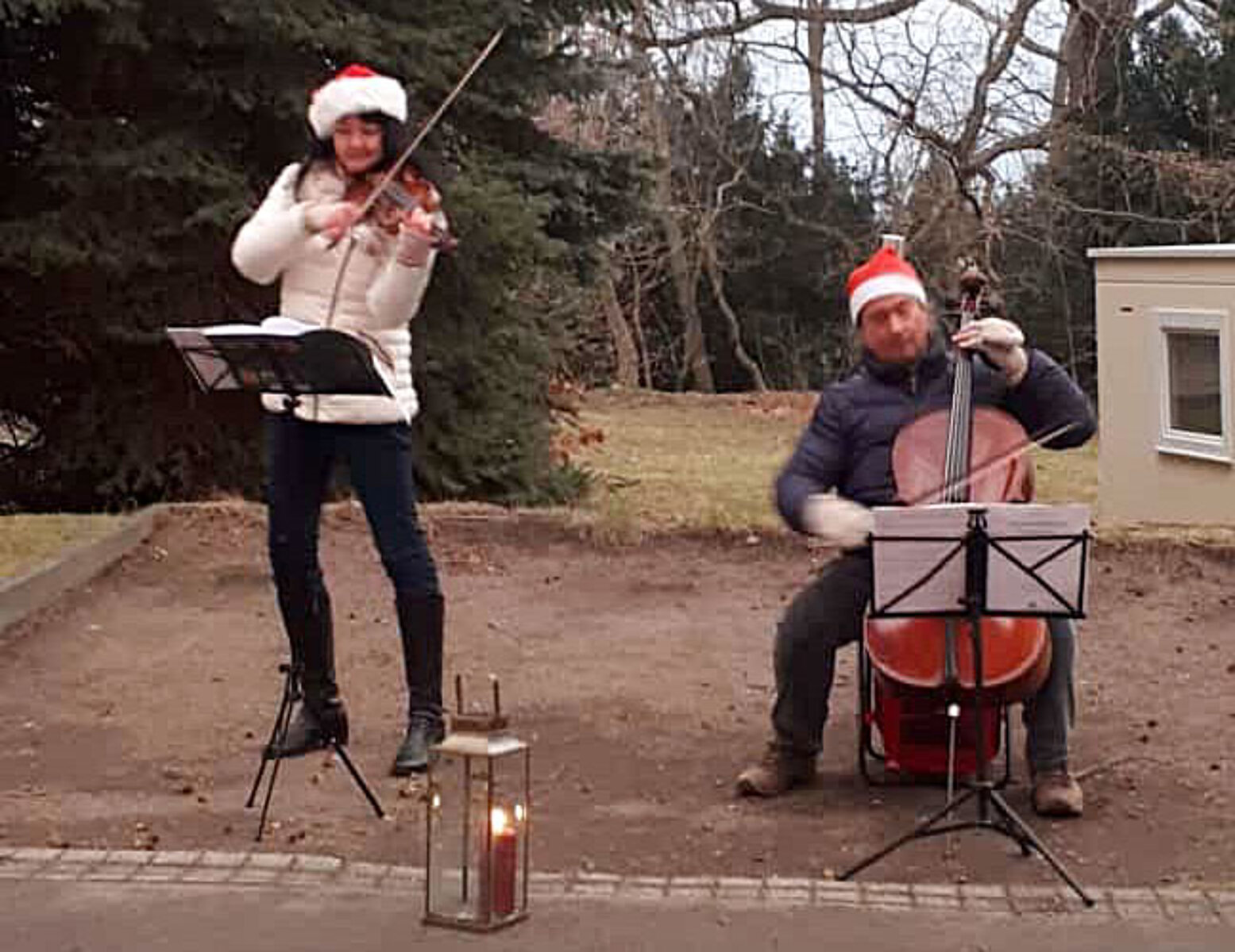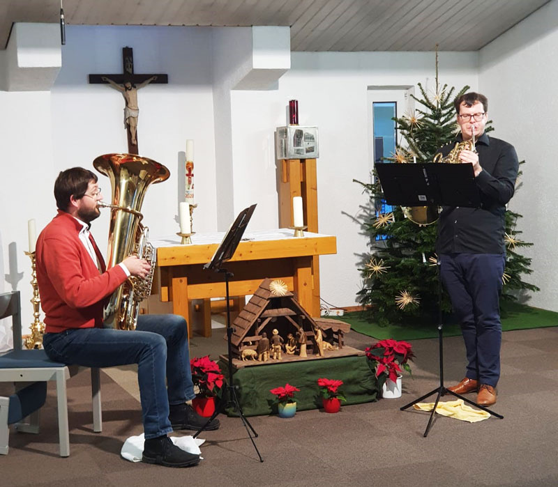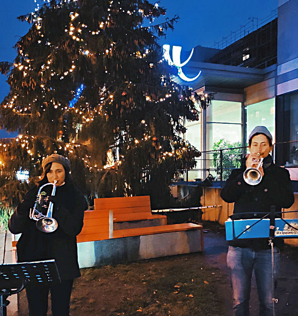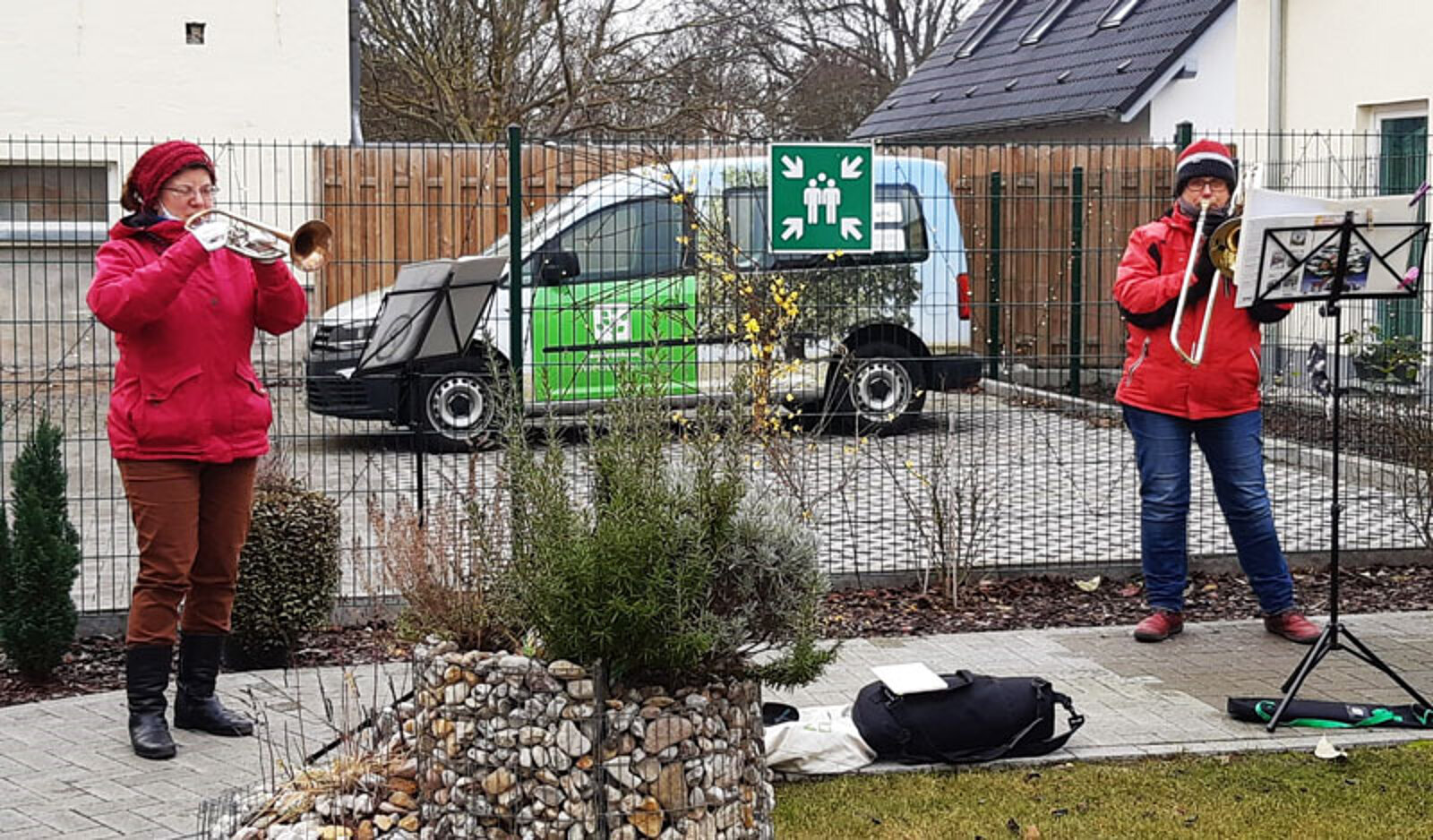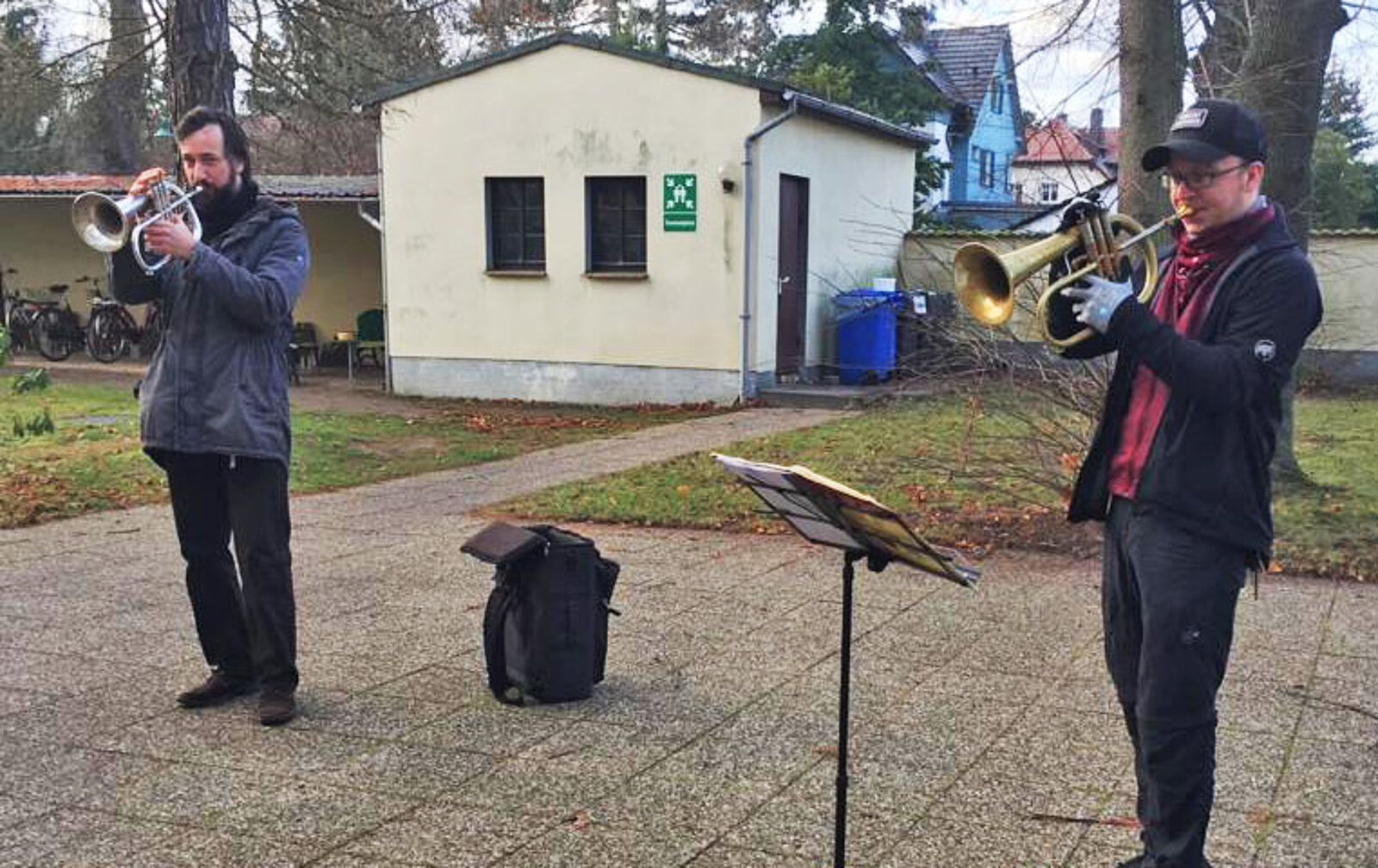 Montag, 21. Dezember: (II) Trompetenduo Burkhardt Fischer & Janice Stand an der Wohngemeinschaft Turmvilla und an Wohngemeinschaft an der Autobahnauffahrt in Frankenberg