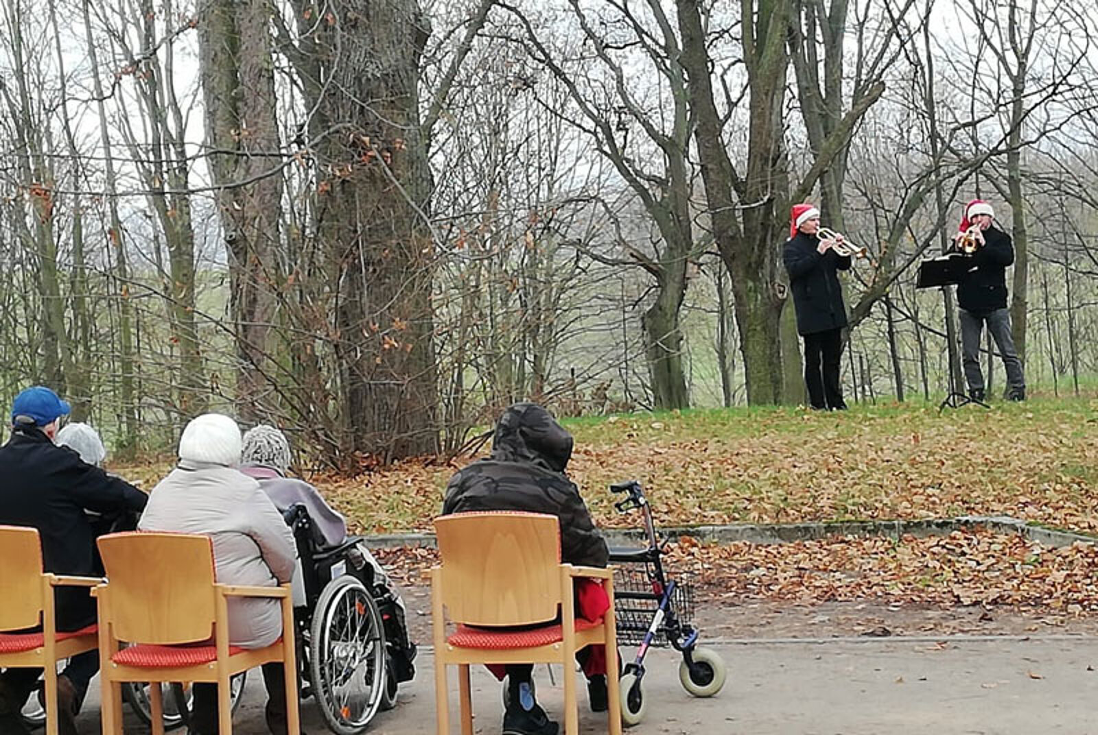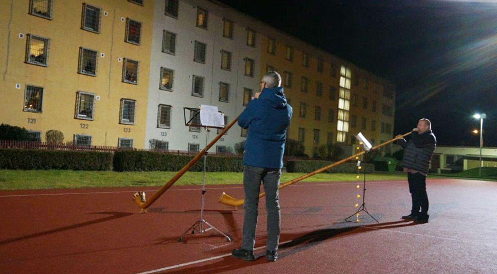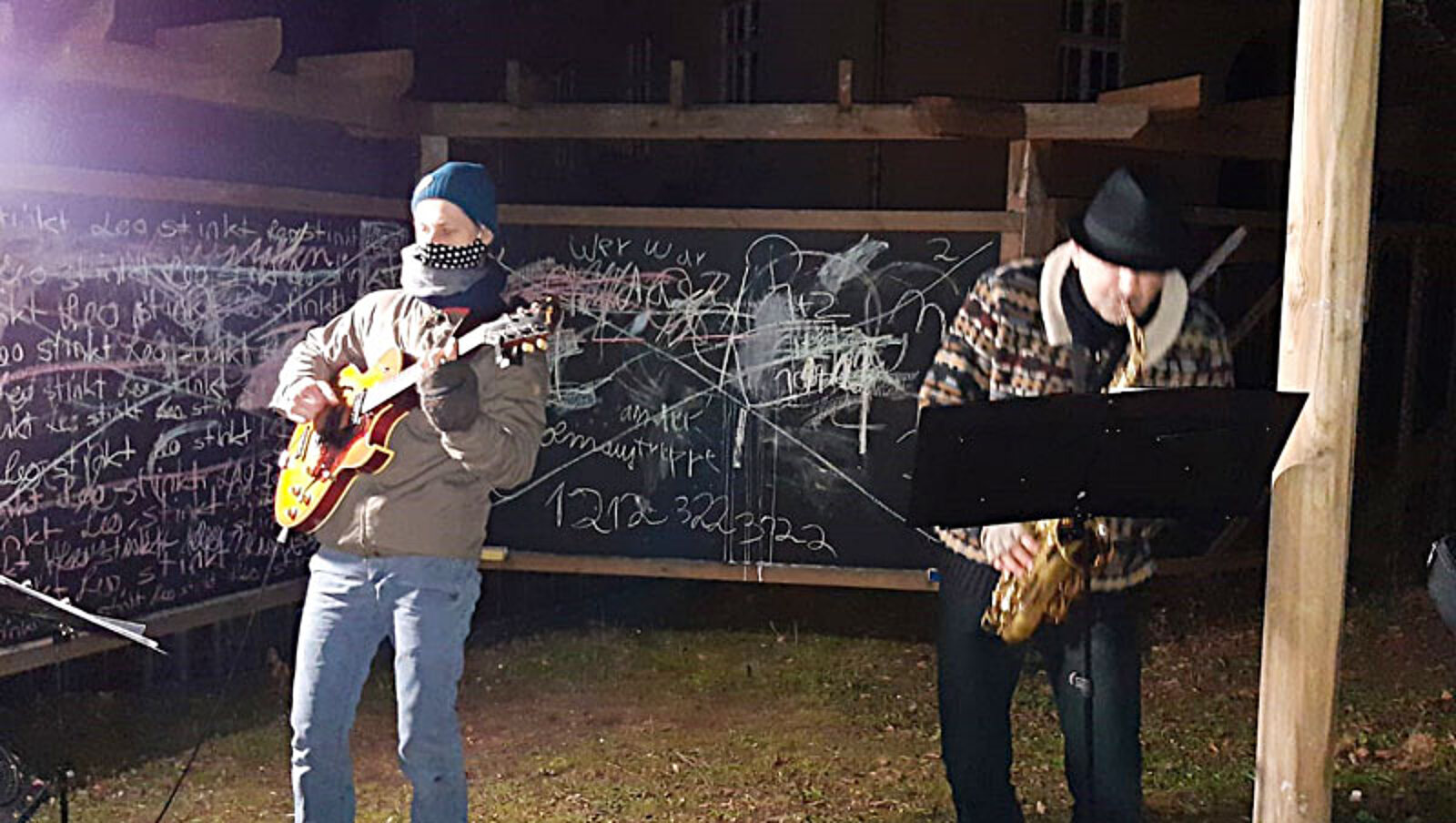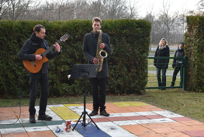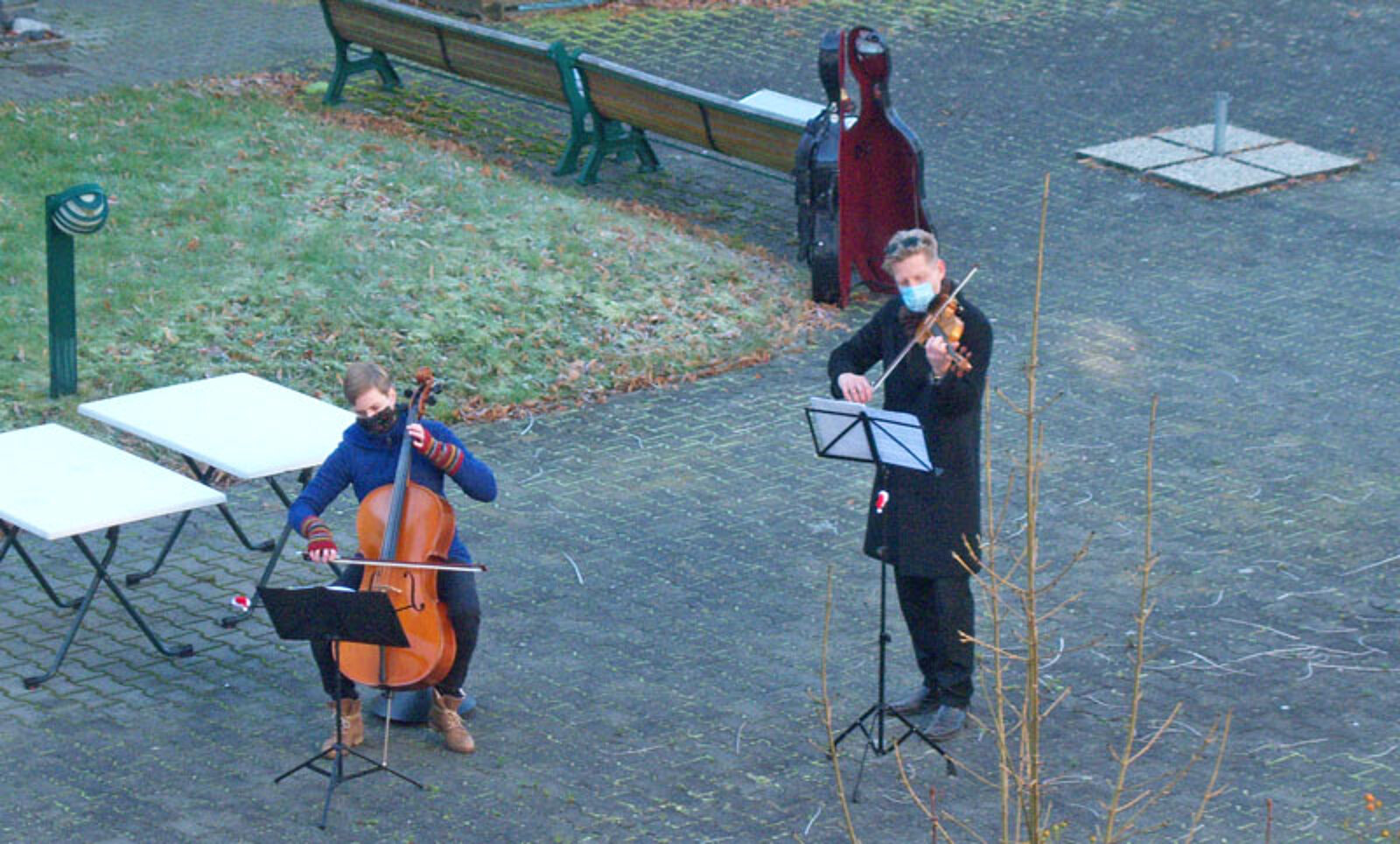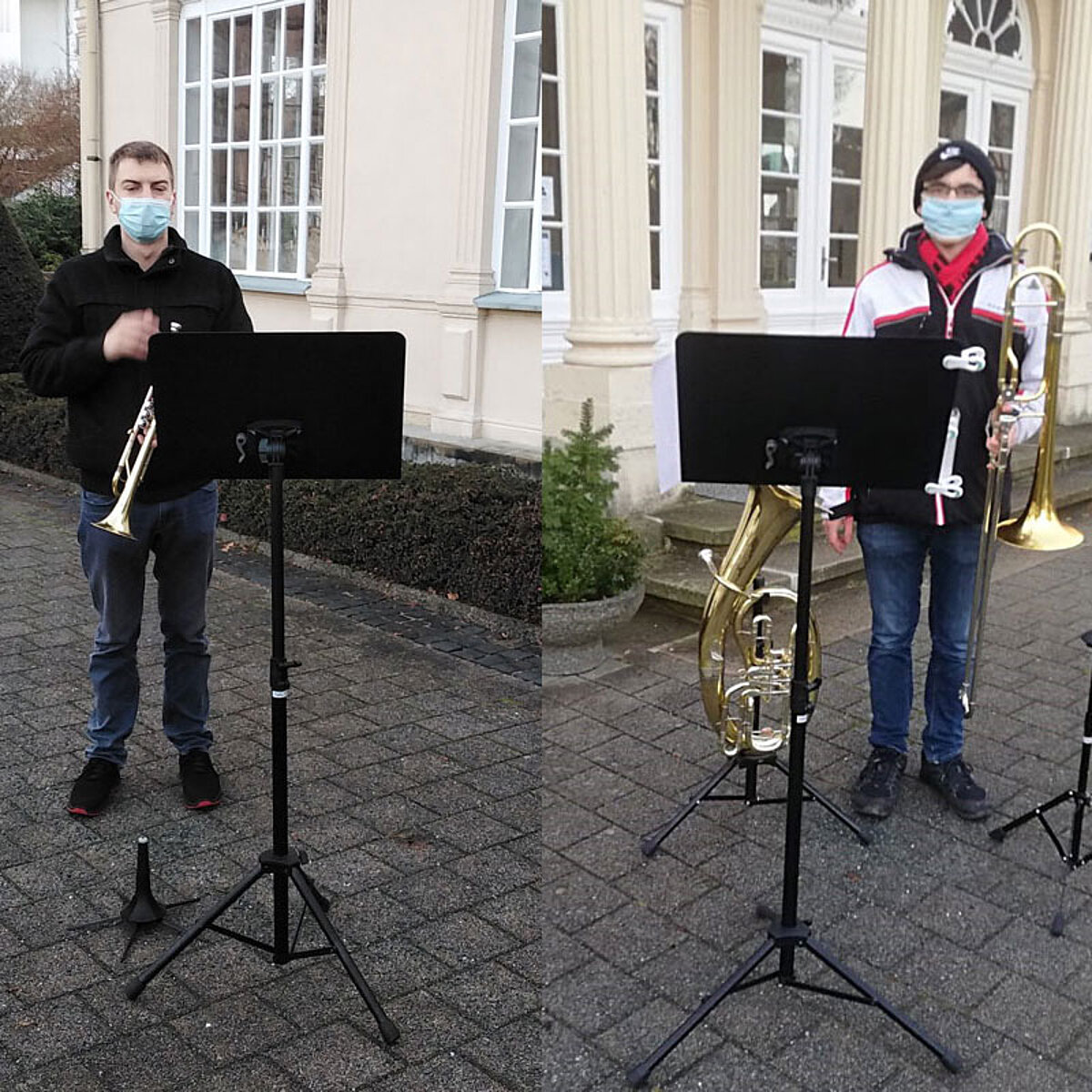 Montag, 21. Dezember: (II) Trompetenduo Burkhardt Fischer & Janice Stand an der Wohngemeinschaft Turmvilla und an Wohngemeinschaft an der Autobahnauffahrt in Frankenberg