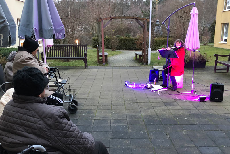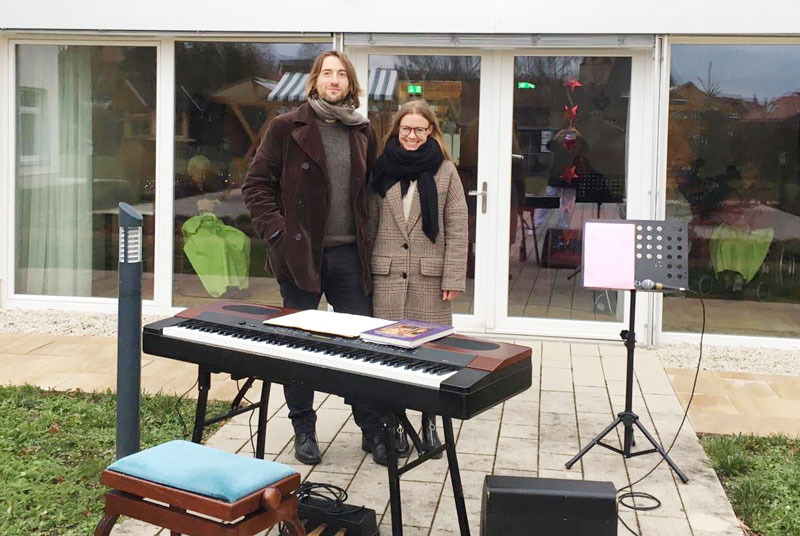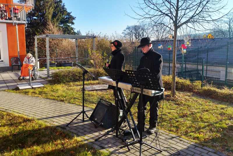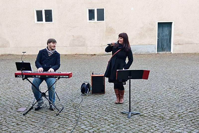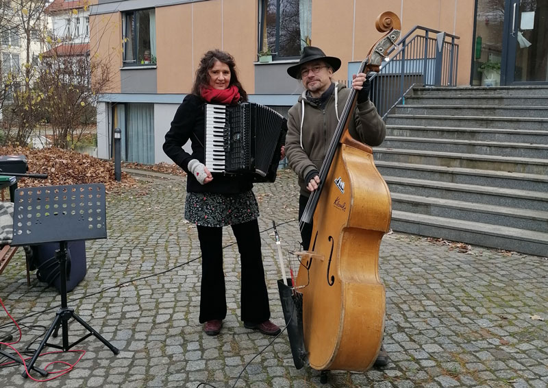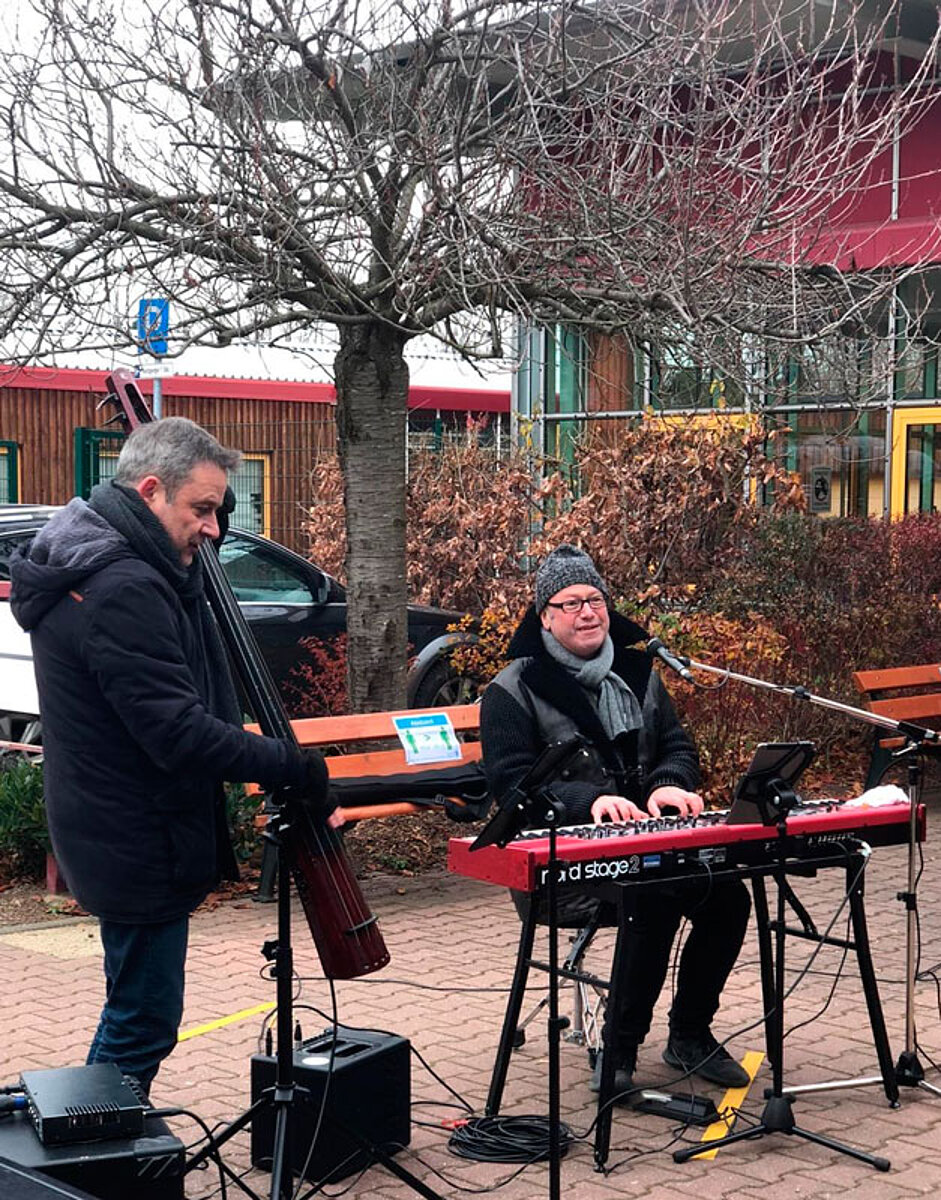 Donnerstag, 3. Dezember: Jens Pflug, Gesang & Keybord und Matthias Kramp, Bass vor der Lukaswerkstatt – Werkstatt für Menschen mit Behinderung in Zwickau