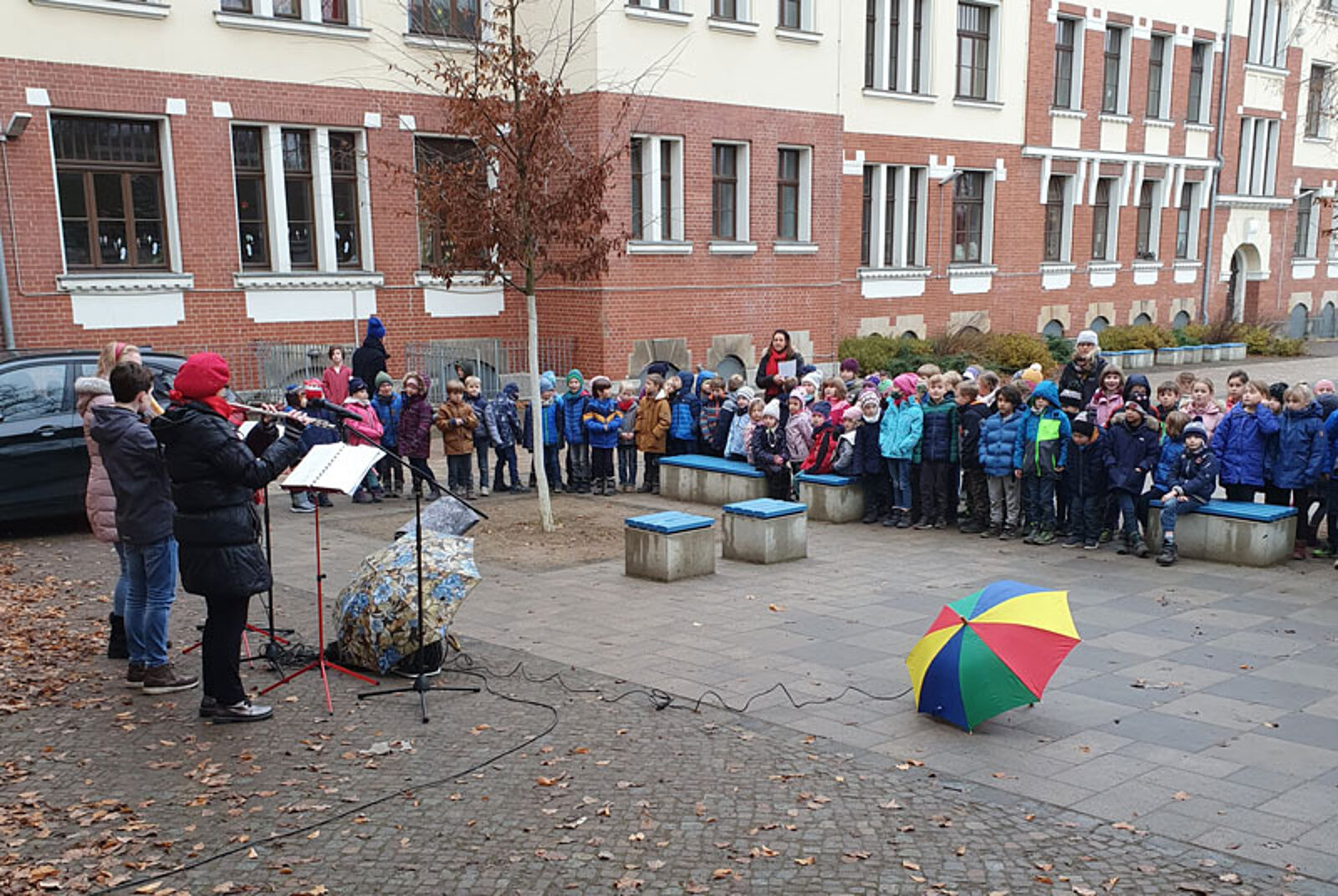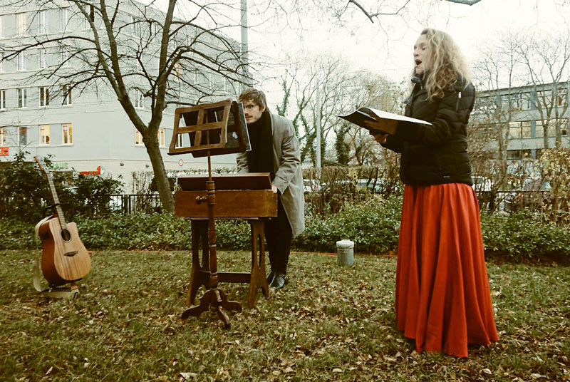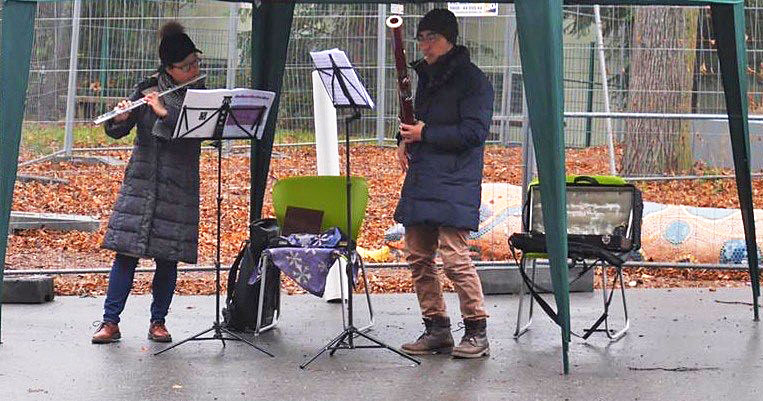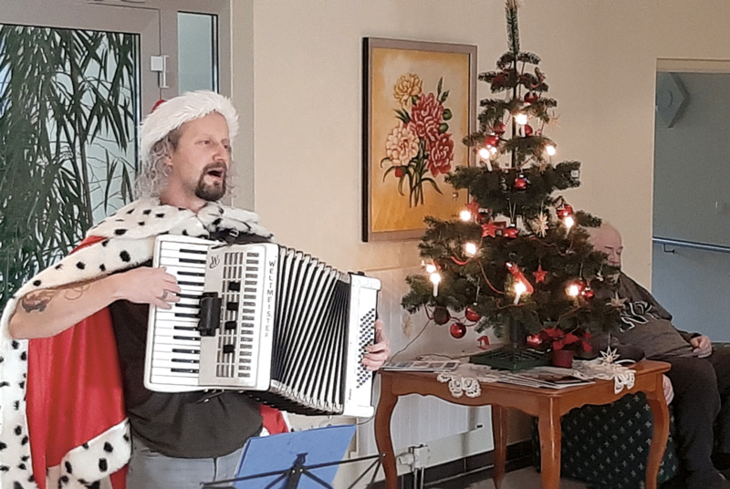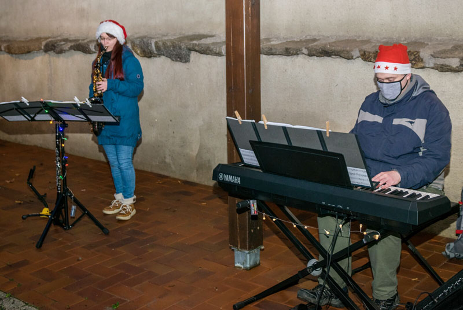 Donnerstag, 3. Dezember: Jens Pflug, Gesang & Keybord und Matthias Kramp, Bass vor der Lukaswerkstatt – Werkstatt für Menschen mit Behinderung in Zwickau
