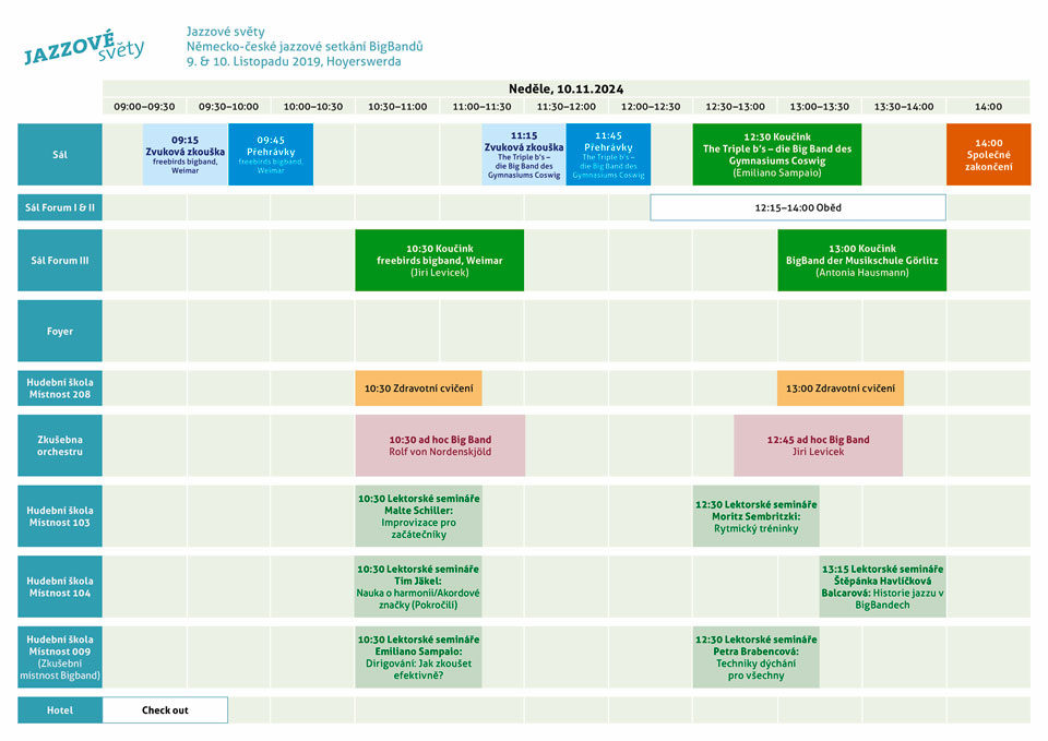 Koncertní křídlo bude k dispozici. Všechny bandy budou používat bubny, které budou k dispozici. Dále bude připravena PA (včetně dvou obrazovek) se zvukařem pro mikrofonové snímání křídla a pro až čtyři další mikrofony sólistů. Všechny ostatní nástroje včetně příslušných zesilovačů si účastníci musí přivézt sami.