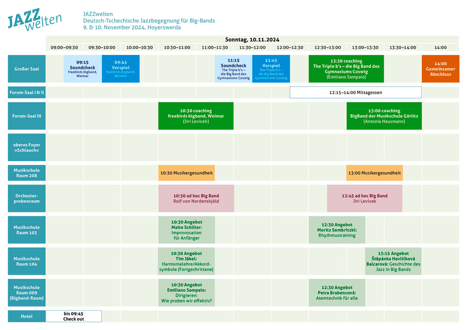 Ein Konzertflügel steht zur Verfügung. Alle Bands nutzen das zur Verfügung gestellte Drumset. Weiterhin steht eine PA (incl. 2 Monitore) mit Tontechniker für eine Mikrophonabnahme des Flügels sowie für bis zu vier weitere Solistenmikrophone bereit. Alle übrigen Instrumente einschließlich der dazugehörenden Verstärker sind von den Teilnehmenden mitzubringen.