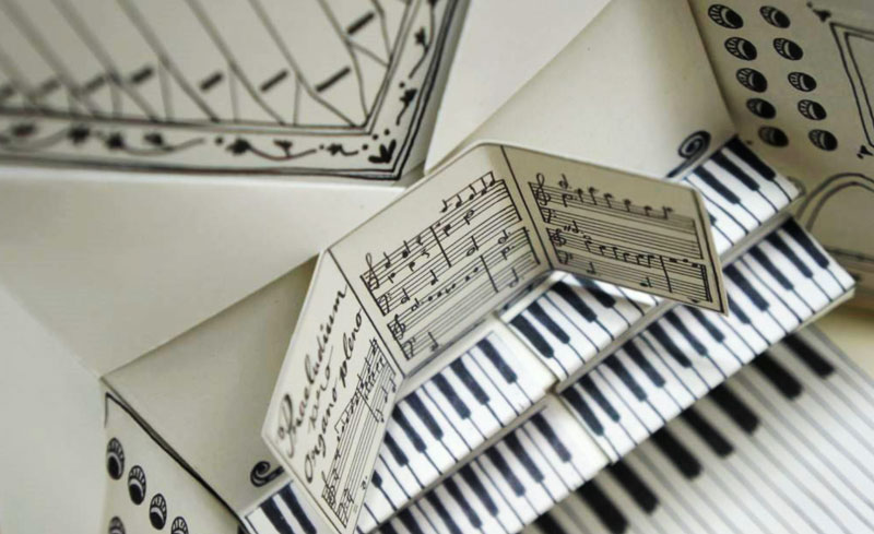 Orgel-Bastelbogen – mithilfe von zwei A4 Kartonbögen entsteht mit flinken Fingern, Schere und Kleber eine kleine Orgel fürs Kinderzimmer …