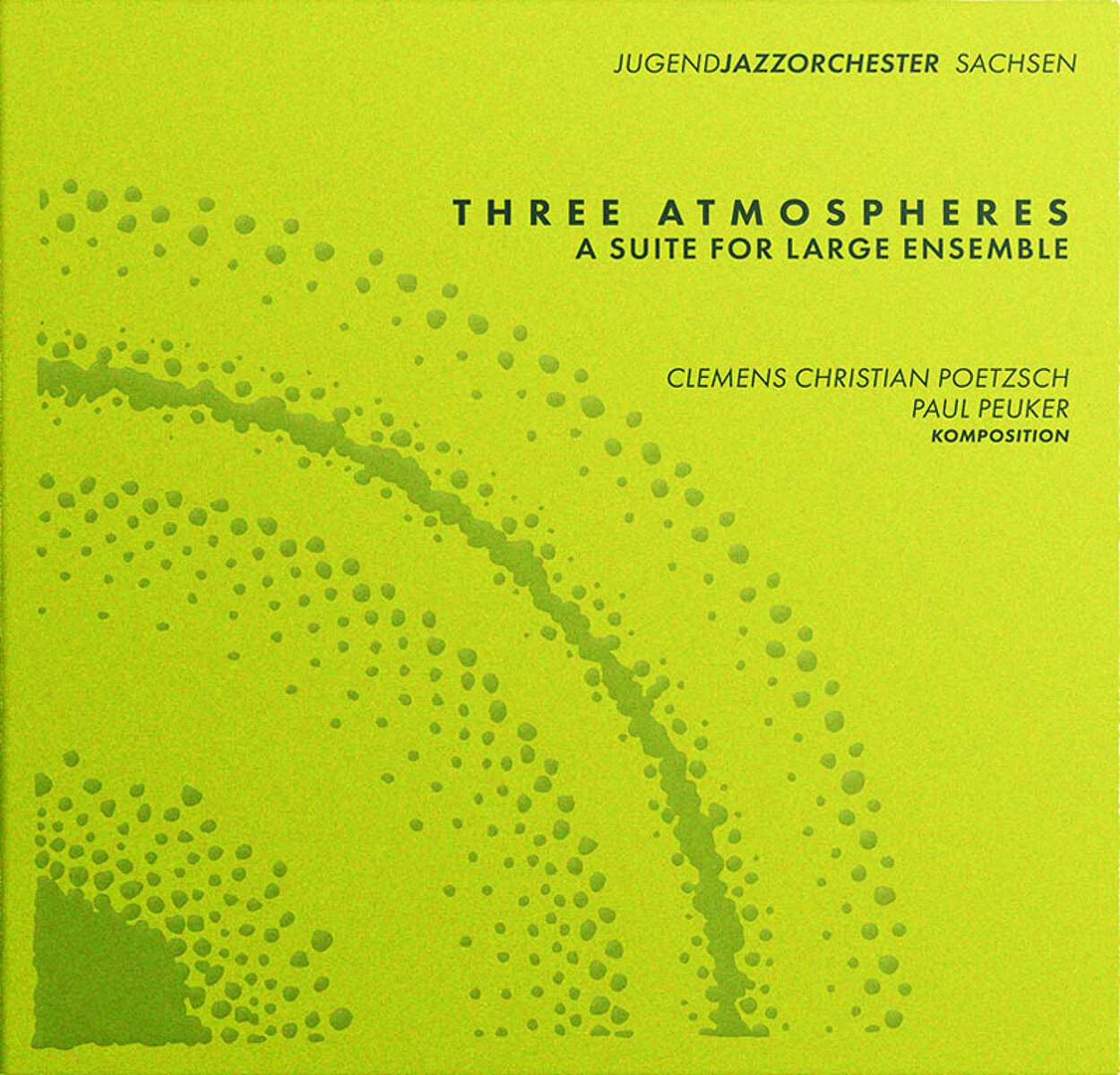 Anlässlich des 25jährigen Jubiläums dieses Auswahlensembles entstand eine Suite für »large ensemble« aus Kompositionen für einen unkonventionellen Klangkörper, in dem sich die Wiederkehr musikalischer Elemente und Motive wie ein roter Faden durch eine genreübergreifende Stilistik zieht. Paul Peuker dazu: »Unsere anfängliche Idee, die drei Klangsphären Bigband, klassisches Orchester und elektronische Instrumentierung in einer neuen, intensiven Musik miteinander zu verschmelzen, wurde mit »Three Atmospheres« beeindruckende Realität. Beeindruckend deshalb, weil hier junge Musiker mit verschiedenen musikalischen Hintergründen ohne Berührungsängste und voller Interesse an das Projekt herangingen und schnell ein gemeinsames Ziel erkannten: Genregrenzen zu vergessen und in neue Klangatmosphären vorzustoßen. Dadurch wird es möglich, die eigene Kultur lebendig zu halten, jedoch gleichsam zu öffnen und weiter zu entwickeln – eine wichtige Erfahrung!«